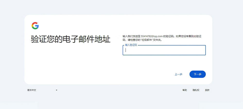 步骤6: 输入邮箱收到的验证码,然后下一步
