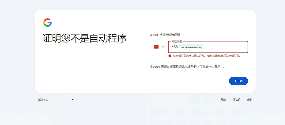 注意: 手机号前面需选择地域,(如中国手机号需选择 中国的国旗图标) 才能正确的收到验证码