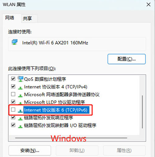 Win修改方法: 桌面右下角右击网络图标 --> 网络和Internet设置 --> 高级网络设置 --> 更多适配器选项 --> 找到 Internet协议版本6(TCP/IP) 把它前面的勾去掉