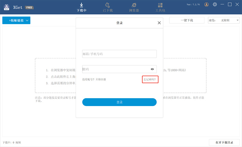 第一行:输入XGet账号, 一般是邮箱或电话号码