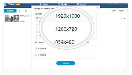 解析完成后会自动弹出选择分辨率的对话框,选择想要下载的分辨率,点击"下载"按钮 将开始下载