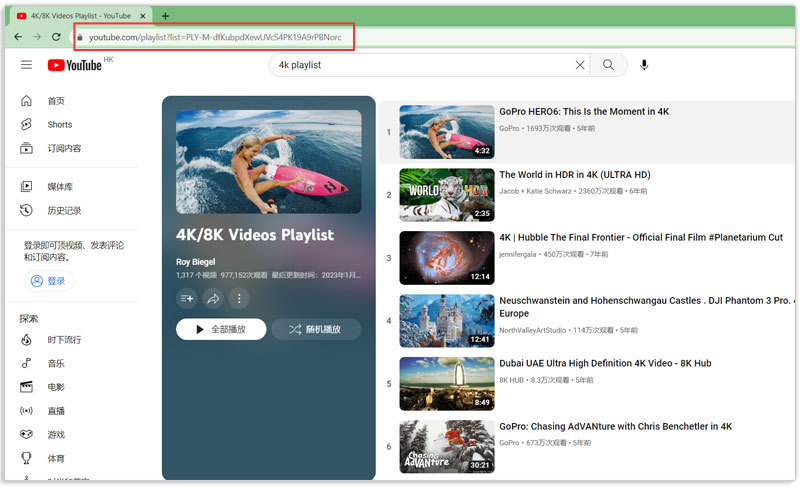 步骤1: 在浏览器中打开YT视频频道或列表,右击复制地址栏中链接 或 直接Ctr+C复制地址栏的链接